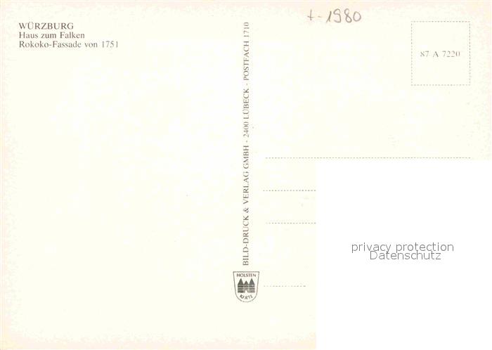 72912021 WueRZBURG Bayern Haus zum Falken postalisch nicht gelaufen Erhaltung siehe scans [NatalD47] KatCode: 11110009663000
