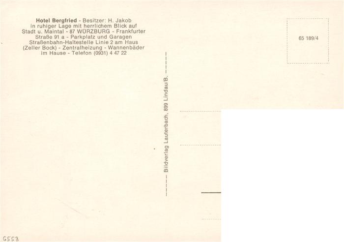 73888106 Wuerzburg Bayern Hotel Bergfried Panorama Maintal postalisch nicht gelaufen Erhaltung siehe scans [FriedD77] KatCode: 11110009663000