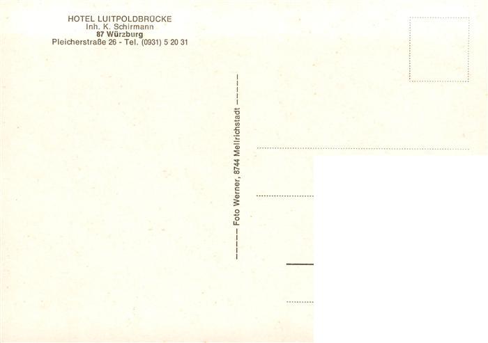 73890599 Wuerzburg Bayern Hotel Luitpoldbruecke Restaurant postalisch nicht gelaufen Erhaltung siehe scans [FriedD77] KatCode: 11110009663000