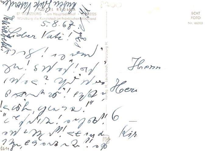 73870291 Wuerzburg Bayern Hotel Regina Brunnen Schloss postalisch nicht gelaufen Erhaltung siehe scans [FriedD77] KatCode: 11110009663000