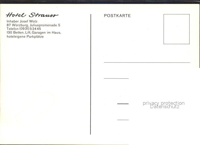 72271800 WueRZBURG Bayern Hotel Strauss postalisch nicht gelaufen Erhaltung siehe scans KatCode: 11110009663000
