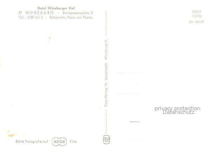 43350016 WueRZBURG Bayern Hotel Wuerzburger Hof Barbarossaplatz Statue Schloss postalisch nicht gelaufen Erhaltung siehe scans [FriedD77] Frie Katcode 11110009663000