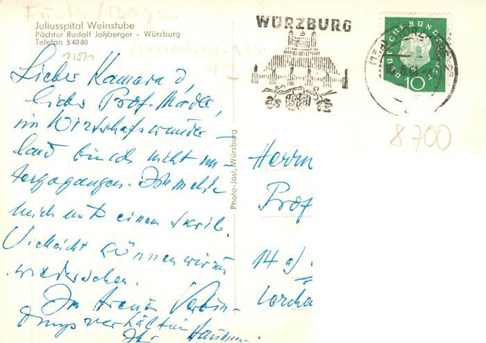 73891654 alte Postkarte Wuerzburg Bayern Juliusspital Weinstube postalisch gelaufen Erhaltung siehe scans [FriedD77] KatCode: 11110009663000