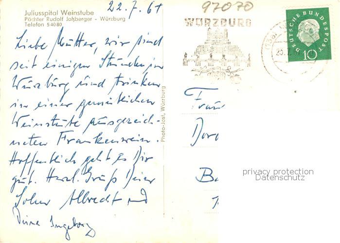 73853077 WueRZBURG Bayern Juliusspital Weinstube postalisch gelaufen Erhaltung siehe scans [WerneD78] alte Postkarte Wern Katcode 11110009663000