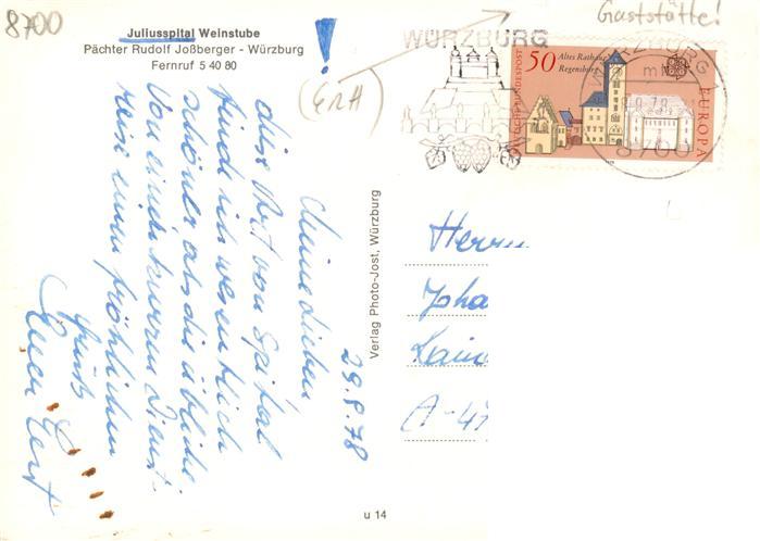 73894065 alte Postkarte Wuerzburg Bayern Juliusspital Weinstube postalisch gelaufen Erhaltung siehe scans [WerneD78] KatCode: 11110009663000