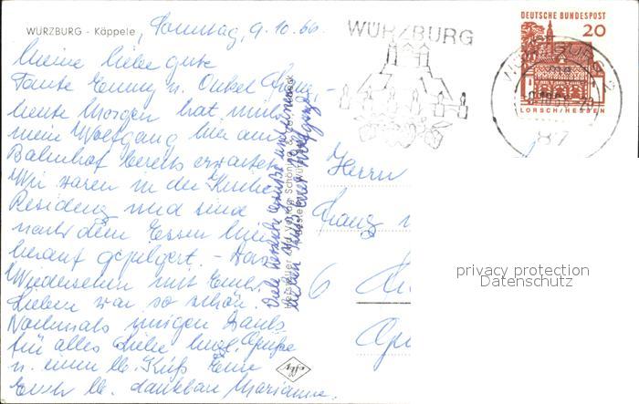 72483597 alte Postkarte WueRZBURG Bayern Kaeppele postalisch gelaufen Erhaltung siehe scans KatCode: 11110009663000