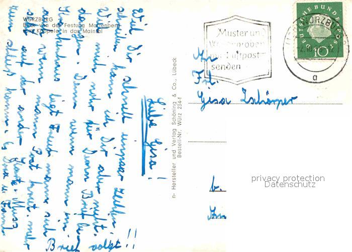 72630295 alte Postkarte WueRZBURG Bayern Kaeppele und Maintal Blick von Festung Marienburg postalisch gelaufen Erhaltung siehe scans [LiesaD40] KatCode: 11110009663000
