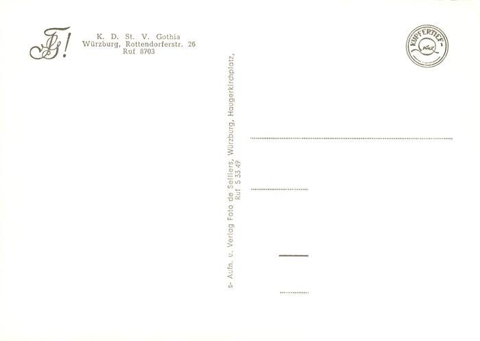 73869829 Wuerzburg Bayern KD St V Gothia postalisch nicht gelaufen Erhaltung siehe scans [FriedD77] KatCode: 11110009663000