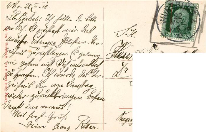 73914043 alte Postkarte Wuerzburg Bayern Kgl Residenz postalisch gelaufen Erhaltung siehe scans [WerneD78] KatCode: 11110009663000