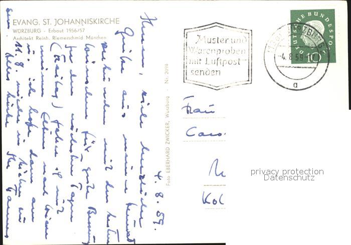72470859 alte Postkarte WueRZBURG Bayern Kirche Architekt Riemenschmid postalisch gelaufen Erhaltung siehe scans KatCode: 11110009663000