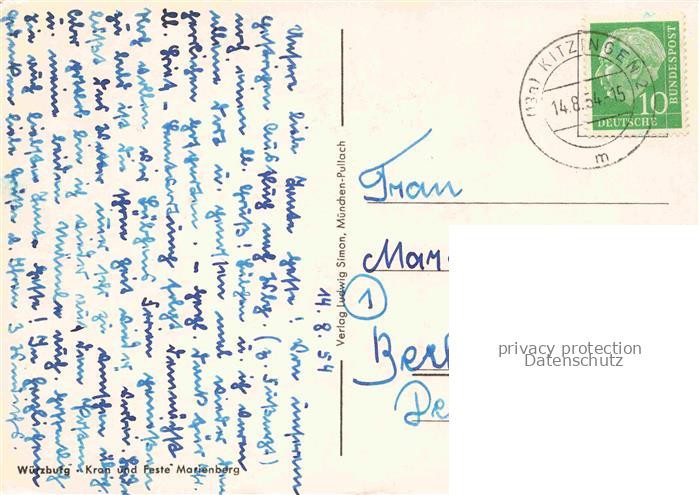 74122218 alte Postkarte WueRZBURG Bayern Kran und Feste Marienberg postalisch gelaufen Erhaltung siehe scans [FriedD77] KatCode: 11110009663000