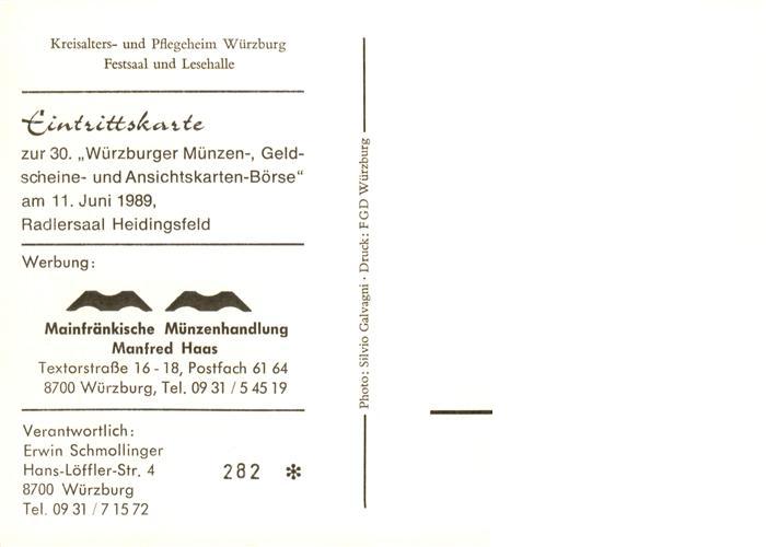 73888397 Wuerzburg Bayern Kreisalters und Pflegeheim Festsaal und Lesehalle postalisch nicht gelaufen Erhaltung siehe scans [FriedD77] KatCode: 11110009663000