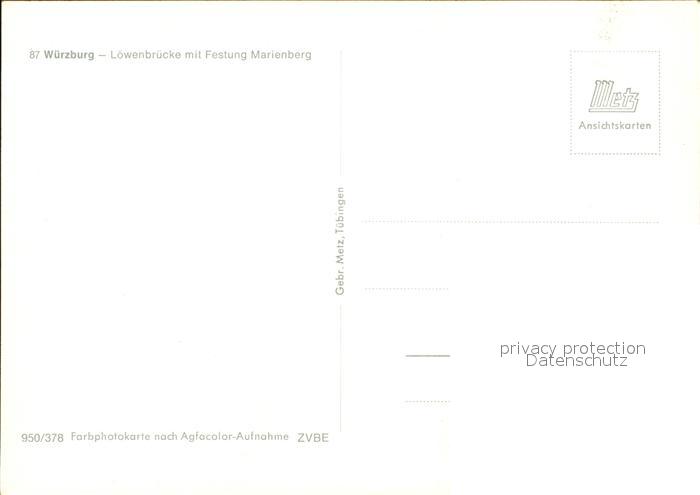 72593785 WueRZBURG Bayern Loewenbruecke mit Festung Marienberg postalisch nicht gelaufen Erhaltung siehe scans [WerneD78] KatCode: 11110009663000