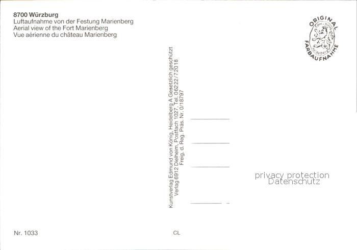 72580161 WueRZBURG Bayern Luftaufnahme Festung Marienberg postalisch nicht gelaufen Erhaltung siehe scans [KathaD79] KatCode: 11110009663000