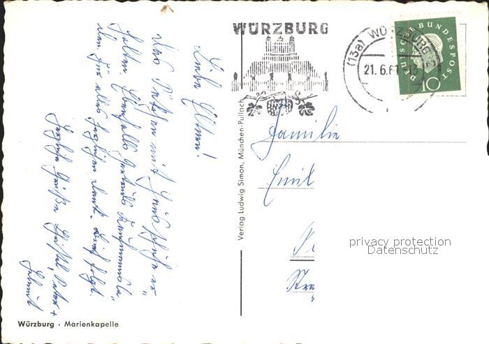 72302476 alte Postkarte WueRZBURG Bayern Marienkapelle postalisch gelaufen Erhaltung siehe scans KatCode: 11110009663000