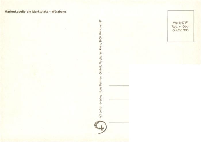 73941355 Wuerzburg Bayern Marienkapelle am Marktplatz postalisch nicht gelaufen Fliegeraufnahme Erhaltung siehe scans [WerneD78] KatCode: 11110009663000