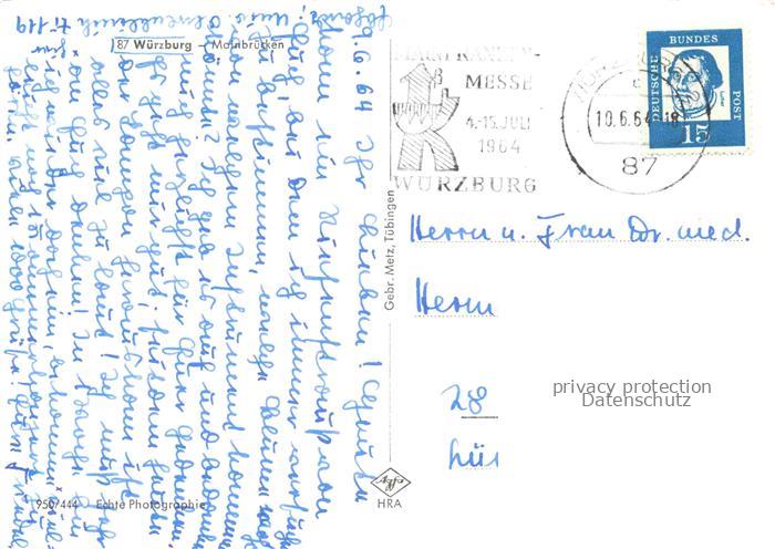 74105212 alte Postkarte WueRZBURG Bayern Panorama mit Mainbruecken Festung Marienberg postalisch gelaufen Erhaltung siehe scans [FriedD77] KatCode: 11110009663000