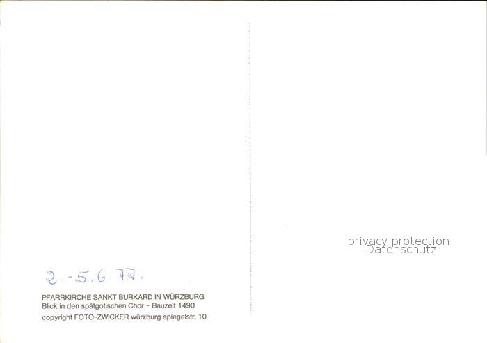 72358432 WueRZBURG Bayern Pfarrkirche St Burkhard Chor postalisch nicht gelaufen Erhaltung siehe scans KatCode: 11110009663000