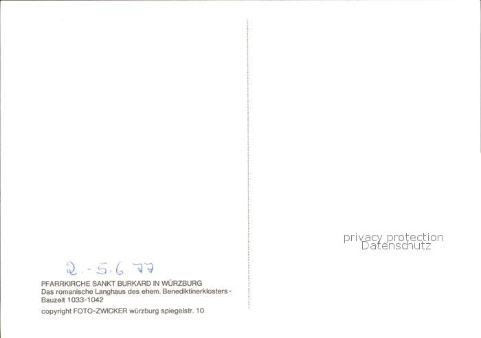 72358431 WueRZBURG Bayern Pfarrkirche St Burkhard postalisch nicht gelaufen Erhaltung siehe scans KatCode: 11110009663000