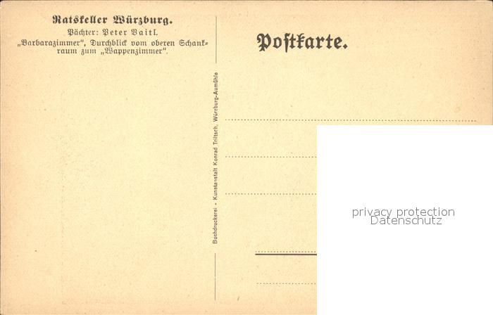 71913671 WueRZBURG Bayern Ratskeller Barbara Zimmer postalisch nicht gelaufen Erhaltung siehe scans KatCode: 11110009663000