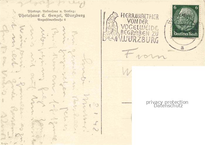 74058677 alte Postkarte WueRZBURG Bayern Ratskeller Ratsbierstube mit den alten Buergerwappen postalisch gelaufen Erhaltung siehe scans [FriedD77] KatCode: 11110009663000