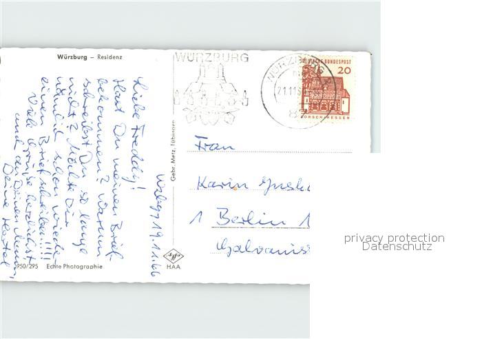72014373 alte Postkarte WueRZBURG Bayern Residenz postalisch gelaufen KatCode: 11110009663000