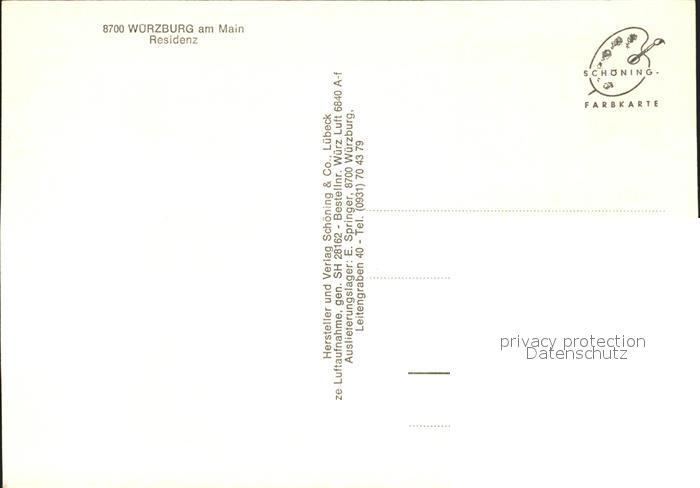 72225875 WueRZBURG Bayern Residenz Fliegeraufnahme postalisch nicht gelaufen Erhaltung siehe scans KatCode: 11110009663000