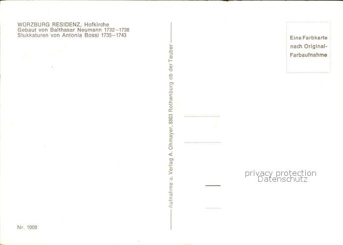 72515633 WueRZBURG Bayern Residenz Hofkirche postalisch nicht gelaufen Erhaltung siehe scans KatCode: 11110009663000
