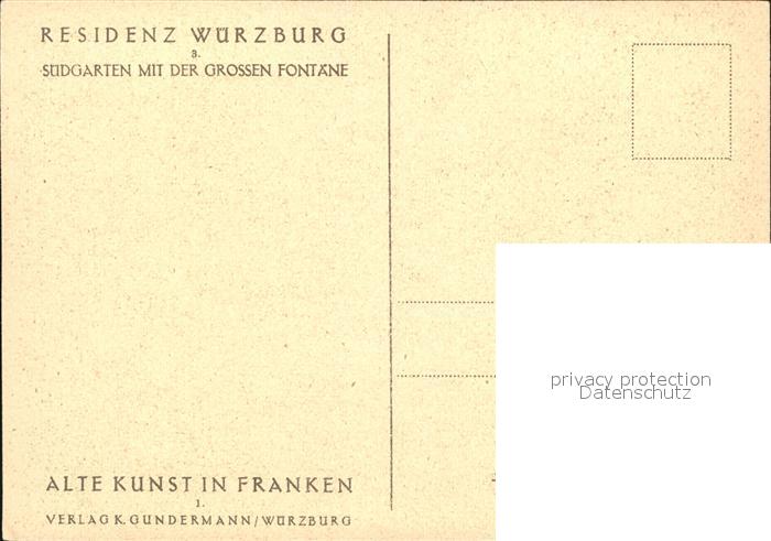 72394131 WueRZBURG Bayern Residenz Suedgarten mit gr Fontaene postalisch nicht gelaufen Erhaltung siehe scans KatCode: 11110009663000