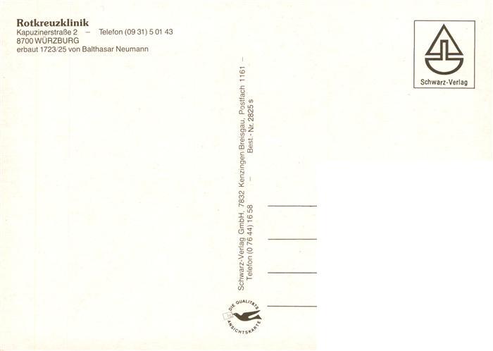 73901461 Wuerzburg Bayern Rotkreuzklinik erbaut 18. Jhdt. von Balthasar Neumann postalisch nicht gelaufen Erhaltung siehe scans [FriedD77] KatCode: 11110009663000