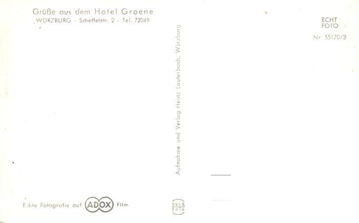 73940770 Wuerzburg Bayern Schloss Park Hotel Groene postalisch nicht gelaufen Erhaltung siehe scans [WerneD78] KatCode: 11110009663000
