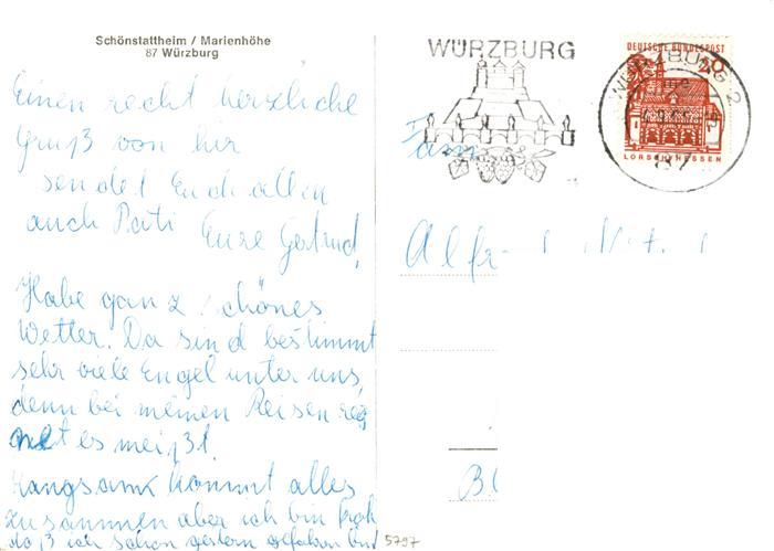 73872136 alte Postkarte Wuerzburg Bayern Schoenstattheim Marienhoehe postalisch gelaufen Fliegeraufnahme Erhaltung siehe scans [FriedD77] KatCode: 11110009663000
