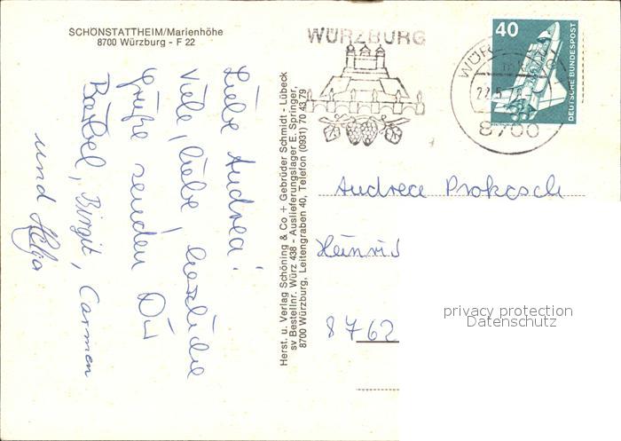 72053855 alte Postkarte WueRZBURG Bayern Schoenstattheim Marienhoehe Kapelle postalisch gelaufen Erhaltung siehe scans KatCode: 11110009663000