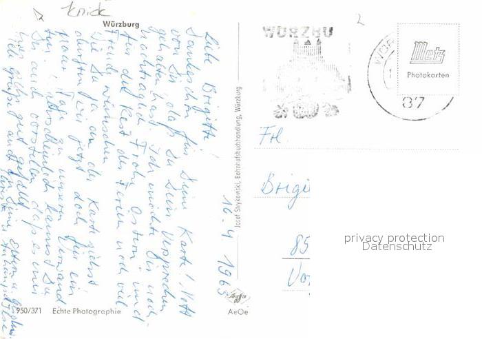 72771184 alte Postkarte WueRZBURG Bayern Stadtblick postalisch gelaufen Erhaltung siehe scans [WerneD78] KatCode: 11110009663000