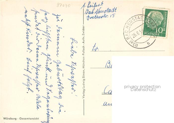 73647266 WueRZBURG Bayern Stadtpanorama postalisch gelaufen Erhaltung siehe scans [FriedD77] alte Postkarte Frie Katcode 11110009663000