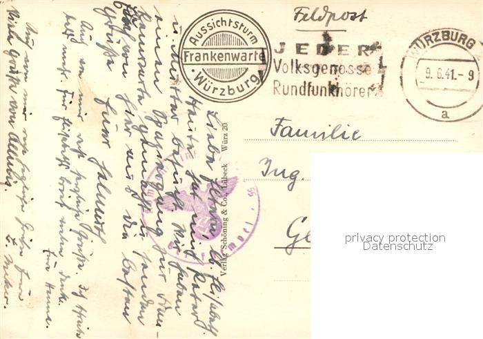 72940344 alte Postkarte WueRZBURG Bayern Stadtpanorama Alte Mainbruecke NZ3 postalisch gelaufen Feldpost Erhaltung siehe scans [FriedD77] KatCode: 11110009663000