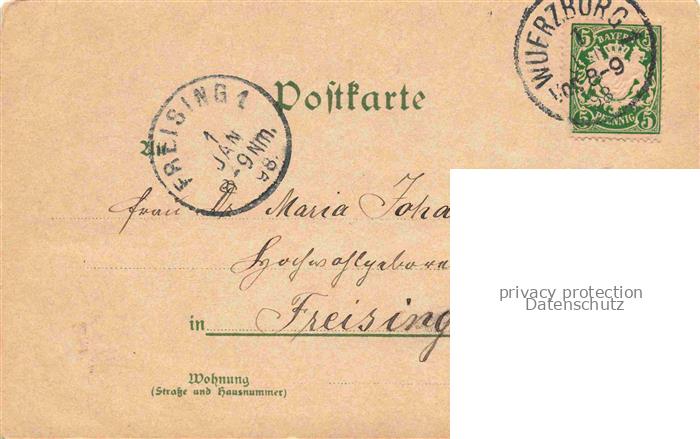 WueRZBURG Bayern Stadtzentrum Neumuenster Kirche Frankenwarte Luitpold-Brunnen Litho postalisch gelaufen Erhaltung siehe scans [FriedD77] alte Postkarte Frie Katcode 11110009663000