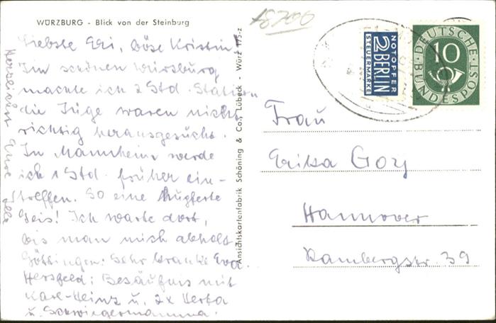 40988856 WueRZBURG Bayern Steinburg postalisch gelaufen Alte Ansichtskarte Postkarte alte Postkarte Katcode 11110009663000