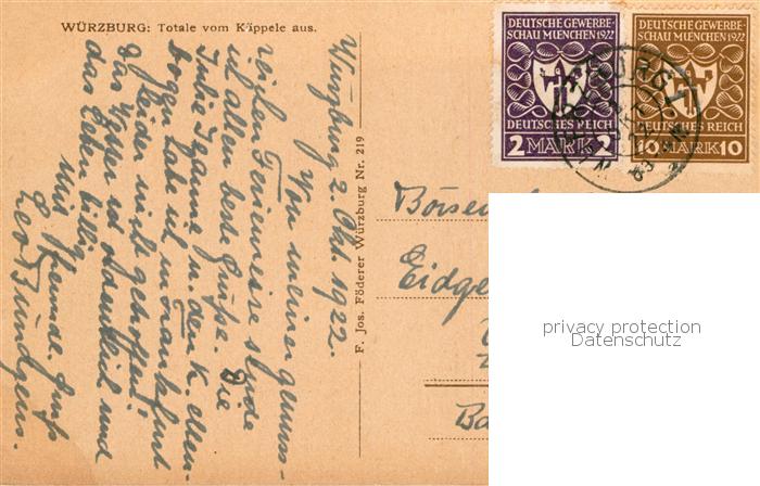 73827721 WueRZBURG Bayern Totale vom Kippele postalisch gelaufen Erhaltung siehe scans [FriedD77] alte Postkarte Frie Katcode 11110009663000
