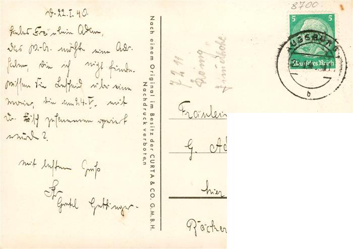 73876925 alte Postkarte Wuerzburg Bayern Universitaet Kuenstlerkarte postalisch gelaufen Erhaltung siehe scans [FriedD77] KatCode: 11110009663000