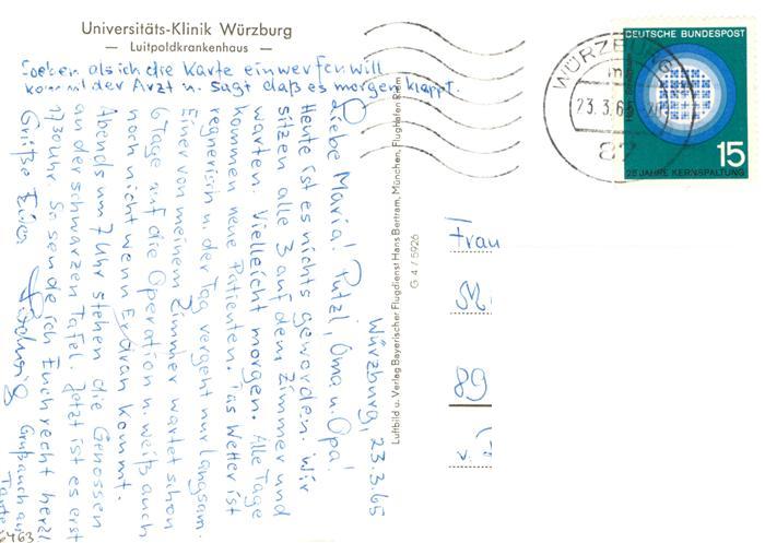 73871965 alte Postkarte Wuerzburg Bayern Universitaetsklinik Wuerzburg Luitpoldkrankenhaus Fliegeraufnahme postalisch gelaufen Erhaltung siehe scans [WerneD78] KatCode: 11110009663000