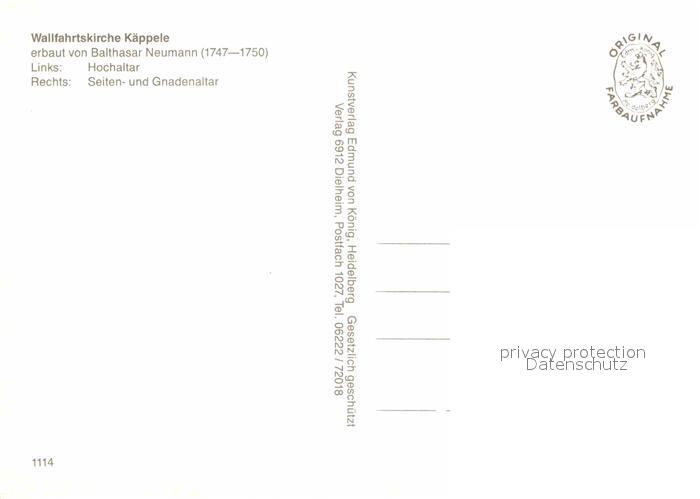 72760920 WueRZBURG Bayern Wallfahrtskirche Kaeppele Erbauer Balthasar Neumann 18. Jhdt. Hochaltar Gnadenaltar Nikolausaltar postalisch nicht gelaufen Erhaltung siehe scans [FriedD77] KatCode: 11110009663000