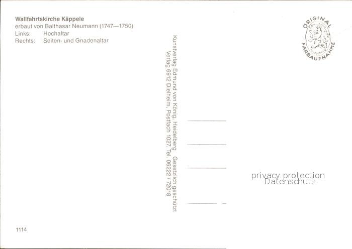 72370812 WueRZBURG Bayern Wallfahrtskirche Kaeppele postalisch nicht gelaufen Erhaltung siehe scans KatCode: 11110009663000
