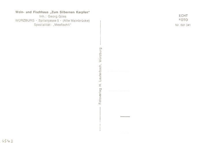 73870294 Wuerzburg Bayern Weinhaus zum Silbernen Karpfen Gastraum postalisch nicht gelaufen Erhaltung siehe scans [FriedD77] KatCode: 11110009663000