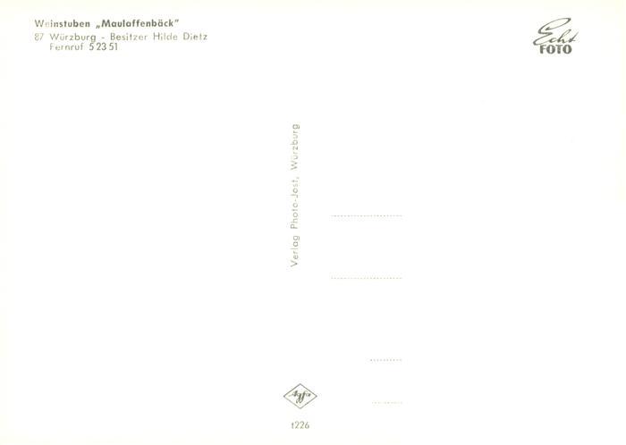73893550 Wuerzburg Bayern Weinstuben Maulaffenbaeck Gaststube postalisch nicht gelaufen Erhaltung siehe scans [WerneD78] KatCode: 11110009663000