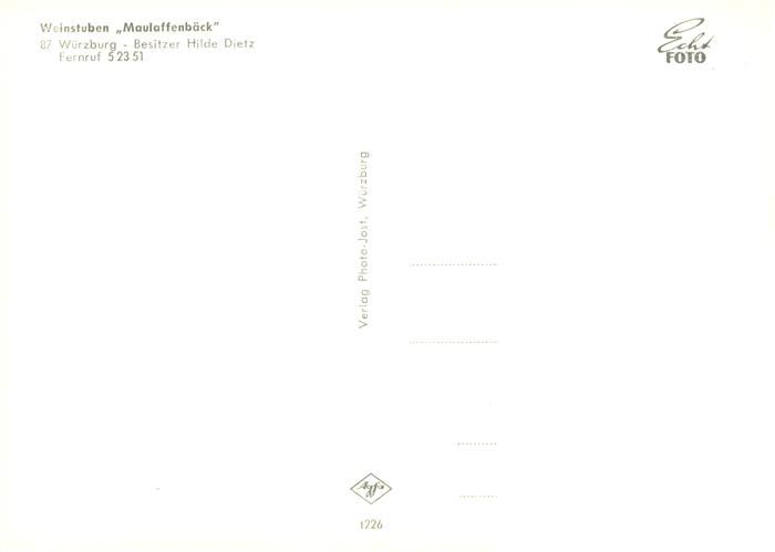 73893551 Wuerzburg Bayern Weinstuben Maulaffenbaeck Gaststube postalisch nicht gelaufen Erhaltung siehe scans [WerneD78] KatCode: 11110009663000