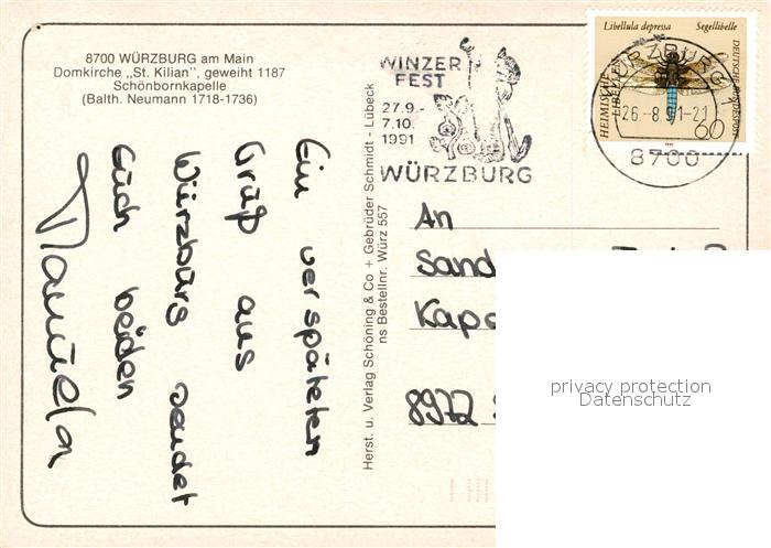 73199126 alte Postkarte Wuerzburg Domkirche St. Kilian Schoenbornkapelle postalisch gelaufen Erhaltung siehe scans [NatalD47] KatCode: 11110009663000