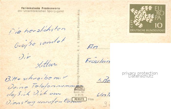 73603399 alte Postkarte Wuerzburg Ferienkolonie Frankenwarte Unterfraenkische Sportjugend postalisch gelaufen Erhaltung siehe scans [KathaD81] KatCode: 11110009663000