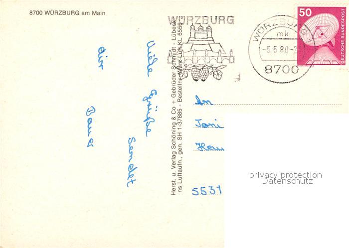 73128531 alte Postkarte Wuerzburg Fliegeraufnahme postalisch gelaufen Erhaltung siehe scans [NatalD47] KatCode: 11110009663000