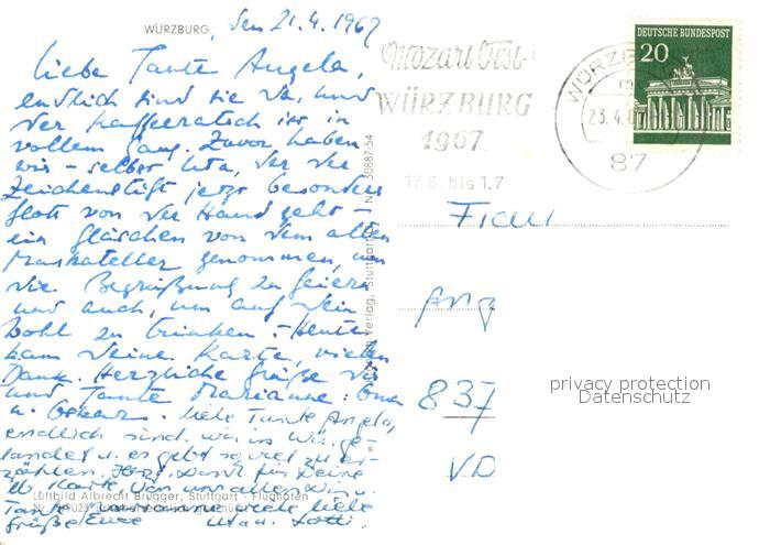 73164924 alte Postkarte Wuerzburg Fliegeraufnahme postalisch gelaufen Erhaltung siehe scans [FriedD77] KatCode: 11110009663000
